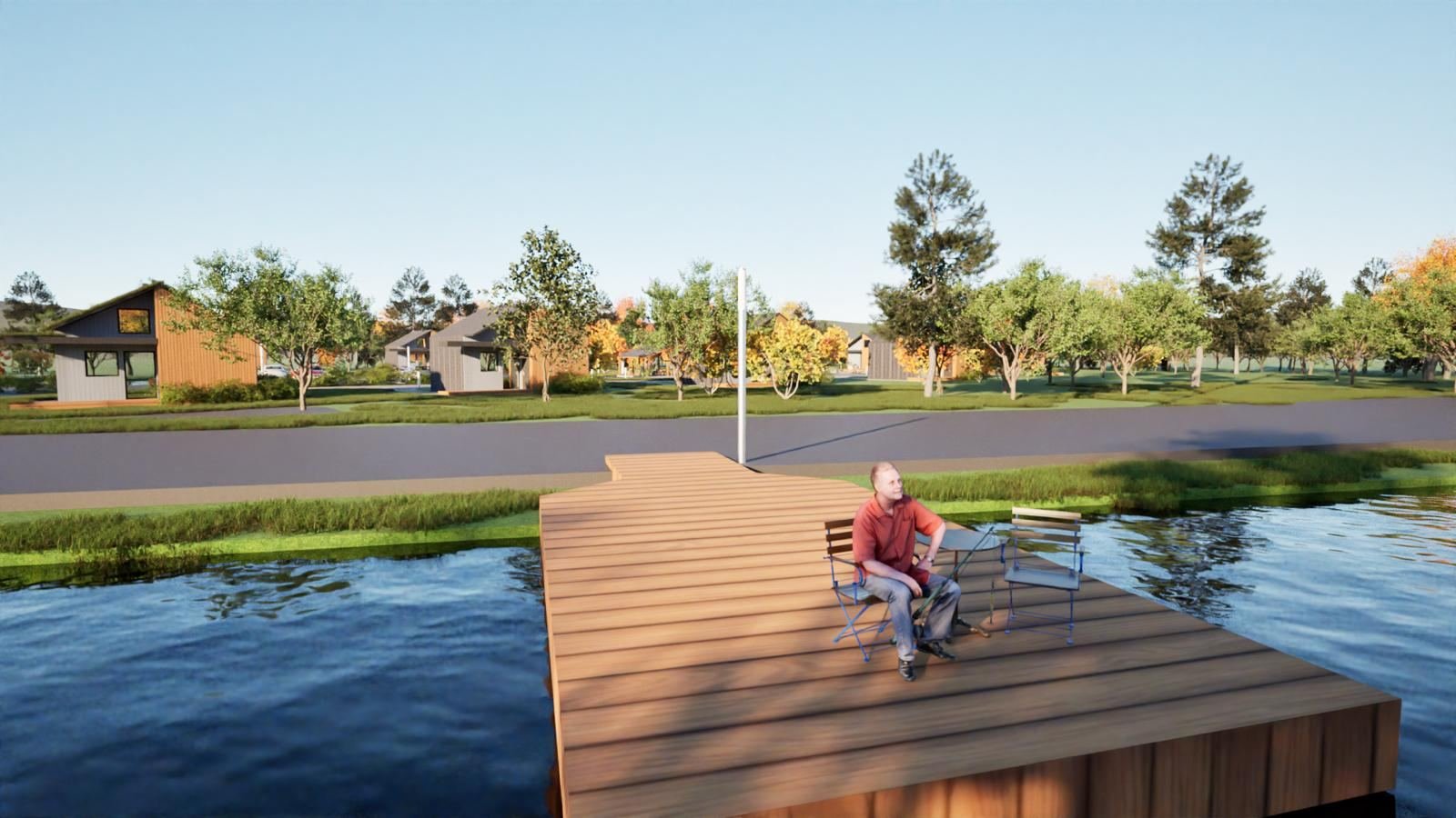 Nowoczesne domki, pomosty i infrastruktura przyjazna środowiskuProjekt zakłada powstanie 10 nowoczesnych domków letniskowych, czterech pomostów, parkingu dla gości oraz kompleksowego zagospodarowania terenu w sposób przyjazny dla środowiska.