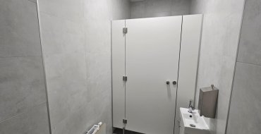 W ramach inwestycji wykonano również pełne zaplecze sanitarne, w tym toalety dostosowane do potrzeb osób z niepełnosprawnościami. Prace obejmowały przebudowę konstrukcyjną, wymianę stolarki, docieplenie budynku oraz wykonanie nowych instalacji: elektrycznych, grzewczych, wodno-kanalizacyjnych i teletechnicznych. Całość uzupełnia nowoczesne wyposażenie – projektory, ekrany oraz sprzęt umożliwiający prowadzenie zajęć na wysokim poziomie technicznym.