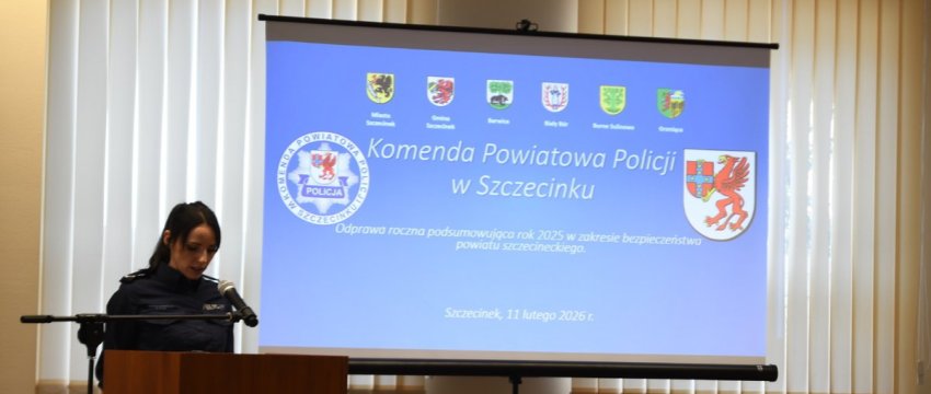 11 lutego 2026 roku w siedzibie Komendy Powiatowej Policji w Szczecinku odbyła się odprawa służbowa podsumowująca pracę jednostki w minionym roku. W spotkaniu uczestniczyło kierownictwo garnizonu, przedstawiciele władz samorządowych, wymiaru sprawiedliwości oraz służb współpracujących z Policją.