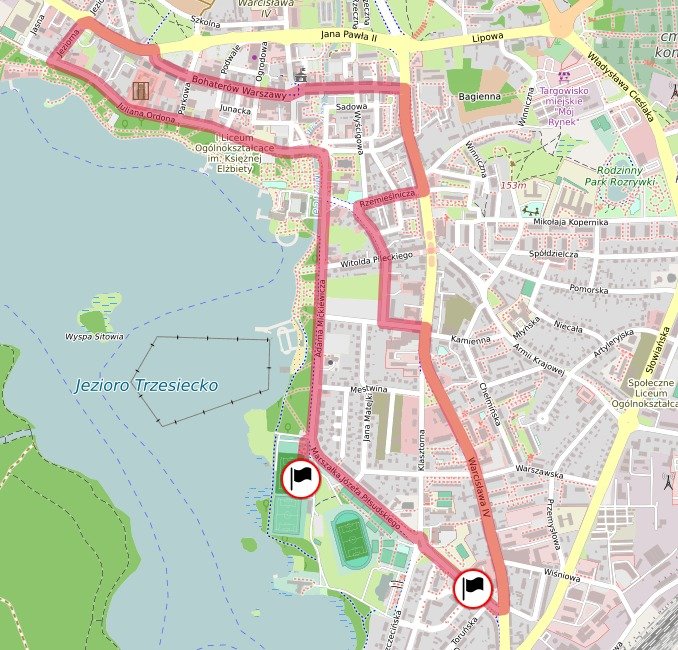 Trasa poprowadzi ulicami Piłsudskiego i księcia Warcisława IV, a następnie – w zmienionym odcinku – przez ulice Kamińskiego, Limanowskiego i Rzemieślniczą. Dalej biegacze wrócą na ulicę Wyszyńskiego i pobiegną znanym fragmentem przez deptak Bartoszewskiego, plac Wolności, ulicę Bohaterów Warszawy oraz Kościuszki. Ostatni etap obejmie ulice Jasną, Ordona, 3 Maja i Mickiewicza, prowadząc zawodników na stadion miejski.