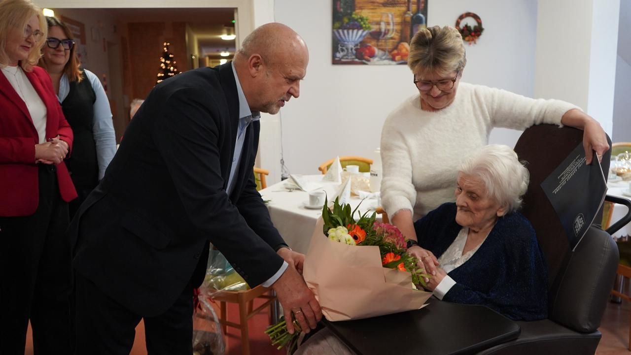 Starosta złożył jubilatce życzeniaW uroczystości wziął udział starosta Krzysztof Lis, który osobiście pogratulował jubilatce, przekazując kwiaty i serdeczne życzenia. Podkreślił wyjątkowość chwili oraz dumę z faktu, że tak niezwykła osoba jest częścią społeczności DPS w Bornem Sulinowie.